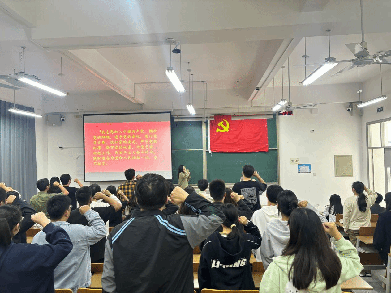 第一项为新入党预备党员入党宣誓,其他党员重温入党誓词。在赵艳领誓下,全体党员紧握右拳,面向党旗,庄严宣誓,一句句誓言掷地有声,表达了大家为共产主义事业奋斗终生的决心和信心。