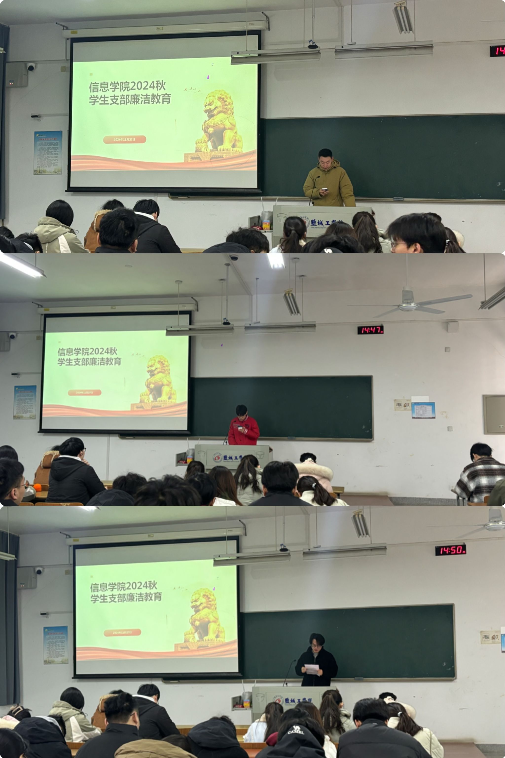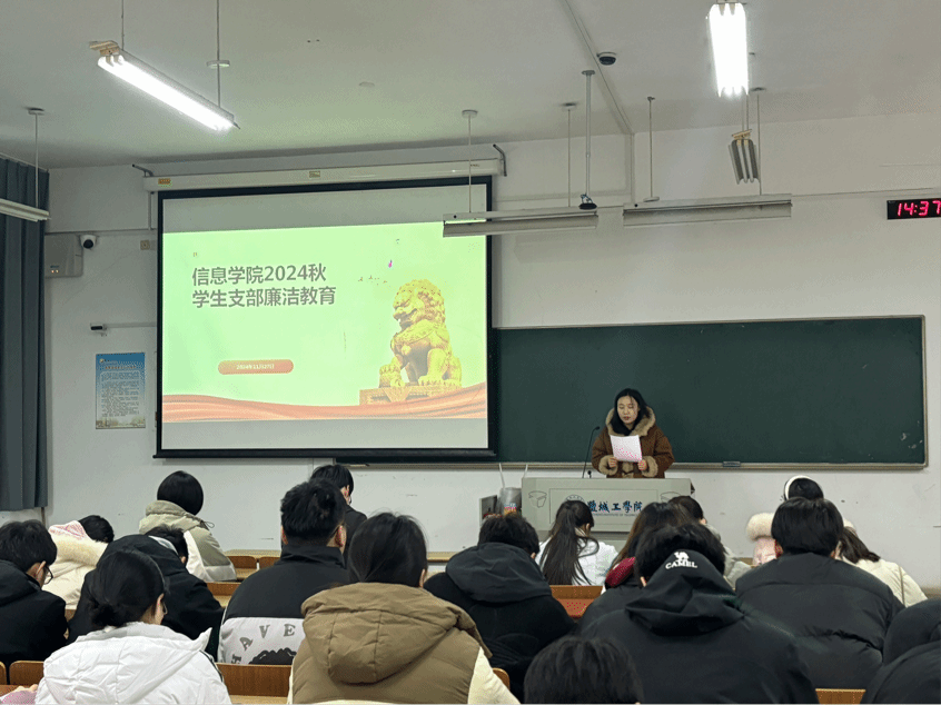 第二项议程为廉洁教育。赵艳宣读了《关于加强新时代廉洁文化建设的意见》,强调廉洁自律在新时代教育的重要性。她指出作为新时代老员工,尤其是员工党员,应将廉洁理念内化于心、外化于行,让清风正气成为青年一代最鲜明的底色,将廉洁教育扎根到日常言行之中,希望同学们做有信仰、讲政治、正能量、有情怀、讲格局、讲奉献、具有引领力的新时代优秀老员工。随后,员工一支部B电子211孟祈海、 员工二支部B计算机212石智轩、 研究生支部Y信息241吴润鑫三位同志结合自身学习与工作交流发言。