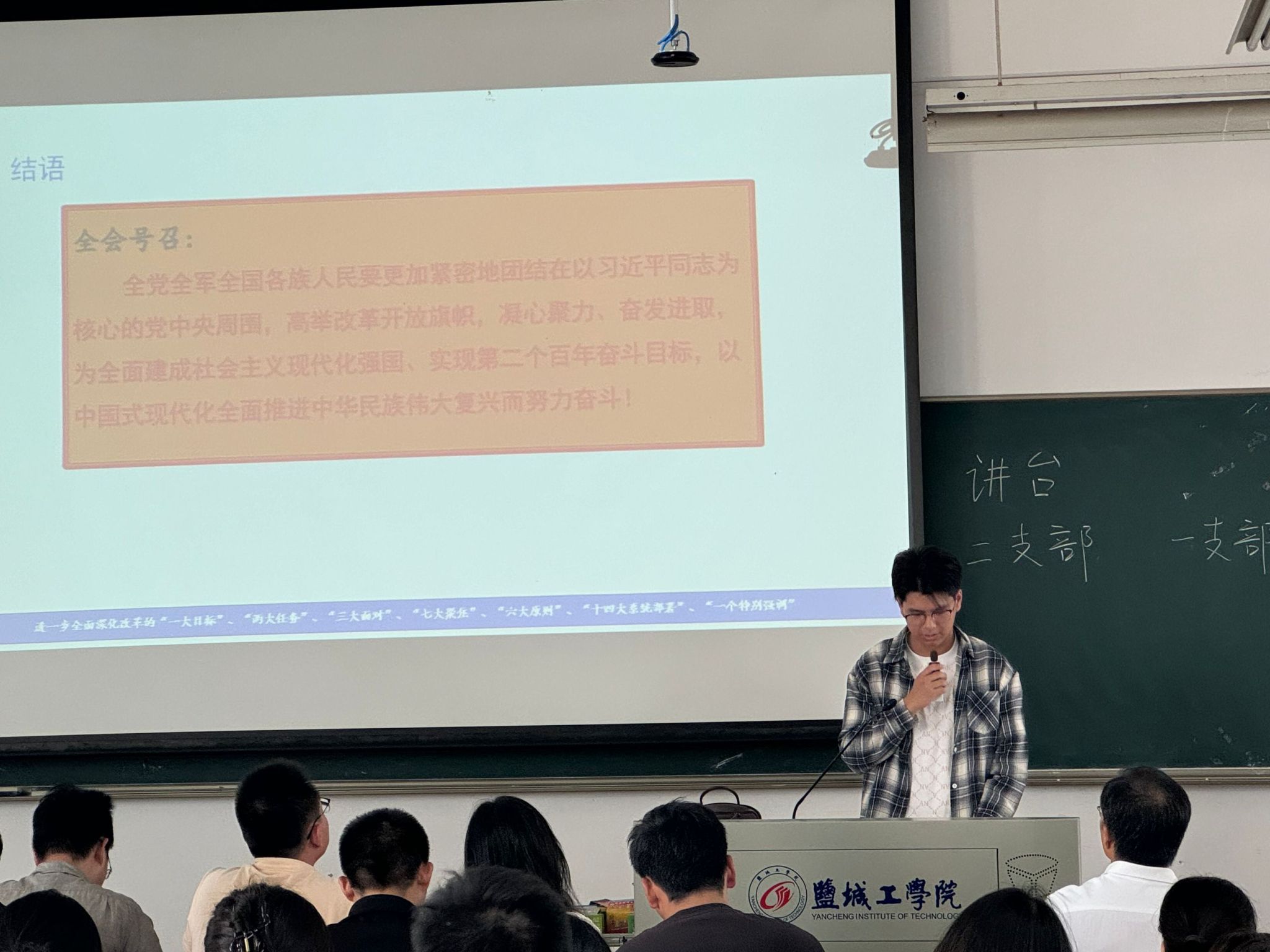第二项为党的二十届三中全会精神学习。田雪俐领学了《中共中央关于进一步全面深化改革推进中国式现代化的决定》,她指出,党员同学要全面、准确领悟党的二十届三中全会精神,领会《决定》中进一步全面深化改革要贯彻“六大原则”和“七大聚焦”,主动将理论学习与社会实践相结合,确保学习成效能够转化为推动学习和工作的动力。交流环节中,党员代表唐钲皓、马子怡、陈名洋分别结合自身学习、工作经历进行发言。