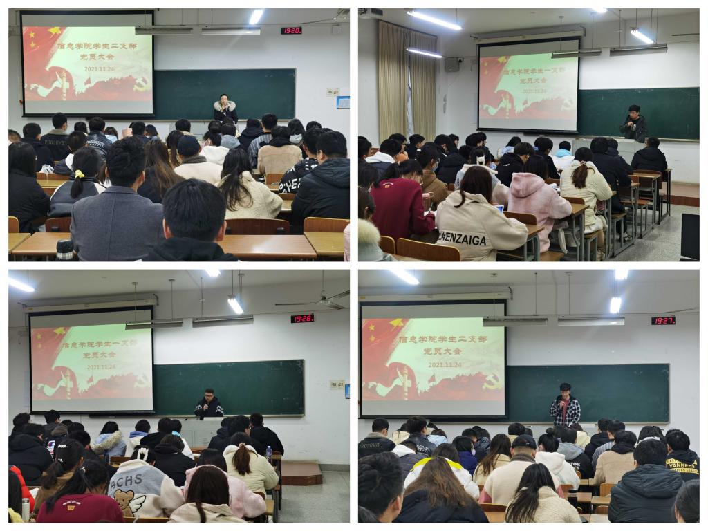 2021年11月24日晚19:00,在博学楼A202、A204,公司召开2021秋员工党员党员支部大会。本次会议的议题是:讨论接收预备党员。员工一支部支部大会由仓思雨主持展开,员工二支部支部大会由陈华蓉主持展开。