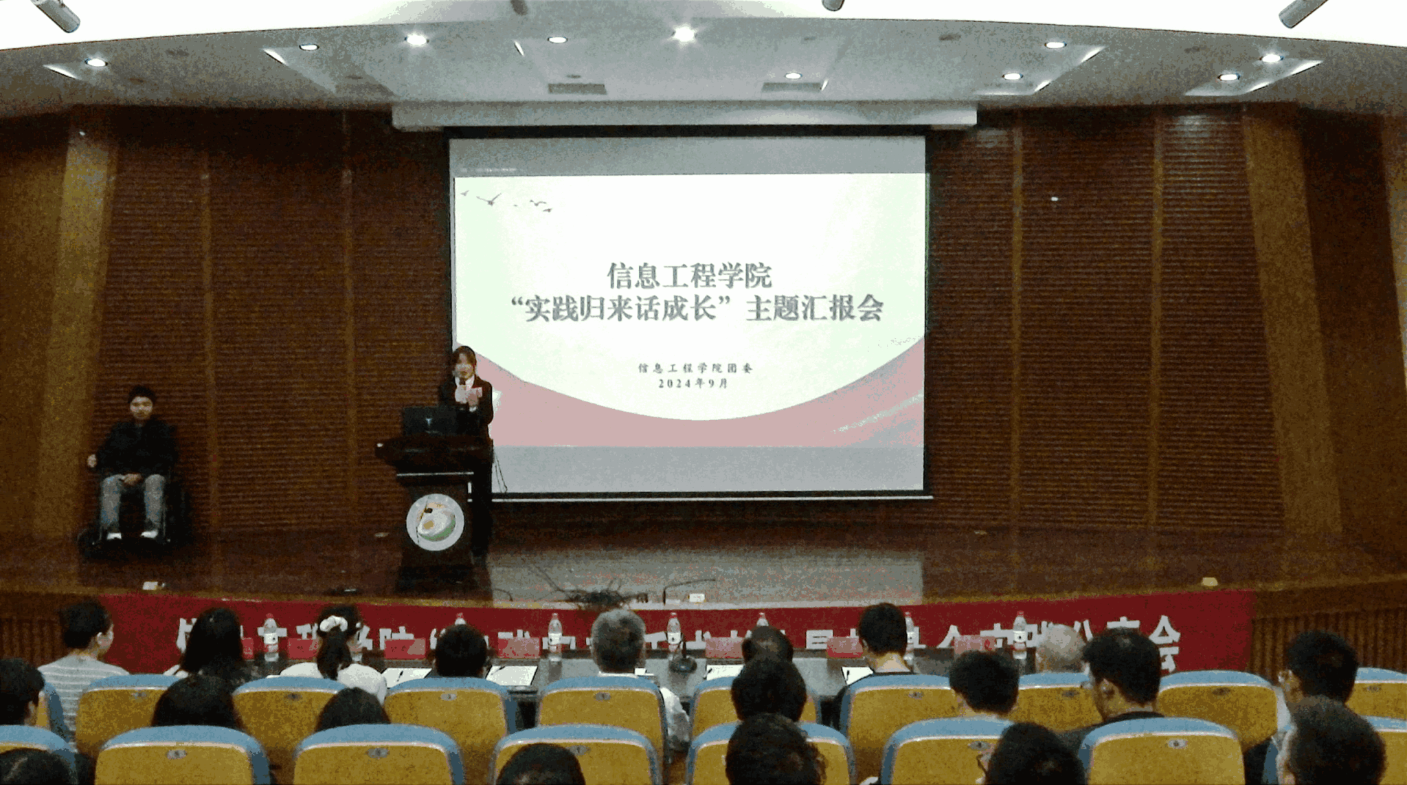 汇报会上,各实践团队负责人上台发言,采用PPT讲演的方式,以生动的影像、丰富的图片和精心准备的汇报内容分享了实践成果,一起回顾了社会实践的精彩瞬间。“明日之星”暑期实践团队连续四年创办爱心暑托班,利用暑假休息时间为社区留守儿童提供公益性辅导;“智启乡村新篇章 共筑振兴中国梦”实践团队通过老党员访谈、专业启蒙讲座、关爱留守老人和爱国主义教育等系列活动,为沙荡社区的居民们带来了实际的帮助和知识;B人工智能232班黄雪晴在暑期返乡成为当地小学、初中的一名实习老师,为家乡的教育发展贡献自己的力量;其余分散实践的各位优秀代表实践内容丰富、形式多样,包括职业体验、助力乡村振兴等。