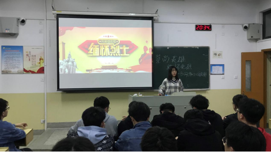 活动过程中,团支书以PPT的形式向大家展现林则徐,方志敏,孙中山,江竹筠,董存瑞,雷锋等人的生平经历和英雄事迹,同学们怀着崇敬的心情分享了自己的体会与感悟。随后,在班长的带领下,同学们分享了各自了解的英雄故事,对先烈们进行了缅怀。活动的最后,团支书给大家播放了英雄志士们的剪辑纪录片,全体成员们都认真观看并表达了对先烈们的无限敬意。