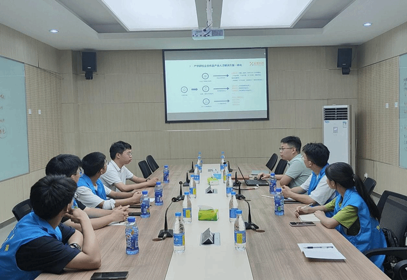 2023年8月8日,williamhill官网暑期实践团队到江苏云思教育科技有限公司开展“凝聚科技创意 成就创新梦想”主题学习调研活动,活动主要有听取报告、座谈交流、咨询调查等环节,纪锦霖老师和唐钲皓等近10名师生参加活动。