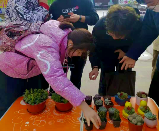 活动开始前,员工志愿者们给大家科普了环保的重要性以及植树节的由来,让同学们对植树节活动有了更深刻的印象。为了提倡绿色环保,废物利用,同学们既可以用旧物来换绿植盆栽,兑换的旧物可以是自己不穿的衣物,也可以是自己不用的文具,甚至是废旧纸箱,还可以自行购买。同学们对此十分热情,纷纷翻出自己的旧物来兑换,将义卖摊围的水泄不通,换到绿植的同学自发的向其他同学宣传,慕名而来的同学越来越多,短短的三十分钟,26盆绿植全部卖完。