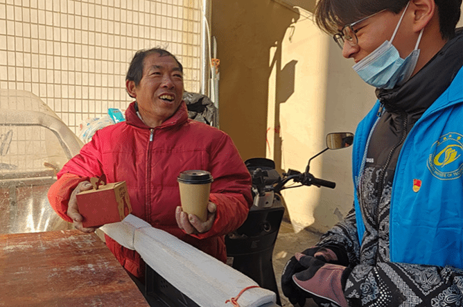 williamhill官网老员工志愿者配合社区工作人员搭建并布置义卖场地,将残疾人制作的银耳羹、平安果等劳动成果整齐摆放,向过往行人售卖。老员工志愿者想出了许多暖心的话语,“卖银耳羹,喝了以后全身暖暖和和 ,卖平安果,吃了以后天天平平安安!”,经过数小时的努力,大家成功将商品全部售出。志愿者们赴沿河社区,为老年人介绍此次义卖活动的意义,并给他们送上精美的礼品,送上诚挚的祝福。社区老人纷纷表示此次活动让大家感受到冬天的温暖,看到志愿者们积极工作的青春活力,感谢志愿者们的爱心与奉献。