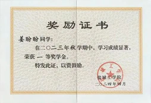 三次获评一等奖学金,一次获评二等奖学金,连续两学年获评校三好员工