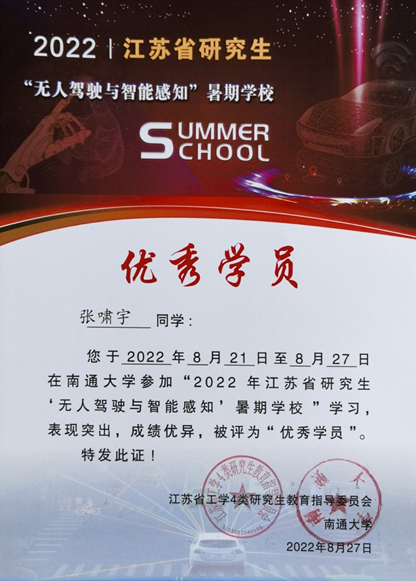 在校时他积极参与了南通大学2022 江苏省研究生“无人驾驶与智能感知”暑期公司项目;2022年德国德累斯顿国际大学线上课程项目;2022年郑州大学2023IEEECIS计算智能暑期公司项目;浙江大学2024第三届运筹学和人工智能在业界的前沿应用讨论会等各项学术活动。