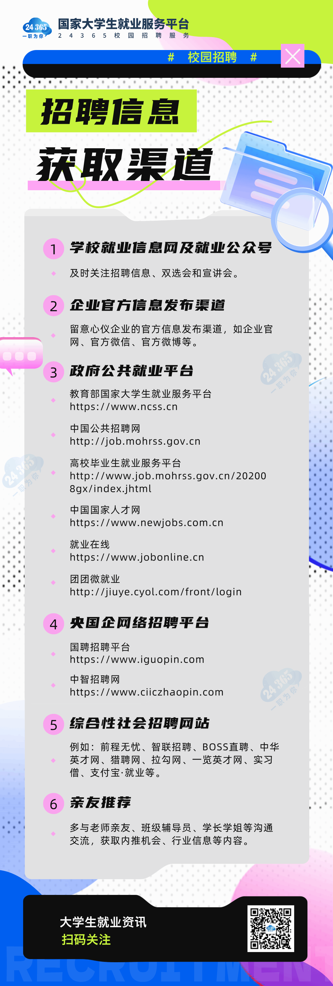 多渠道、全方位信息收集招聘信息。同学们可以利用公司就业指导中心、招聘网站、社交媒体、行业论坛等多种渠道收集招聘信息。并关注目标企业的官方账号和招聘动态,及时获取第一手信息。