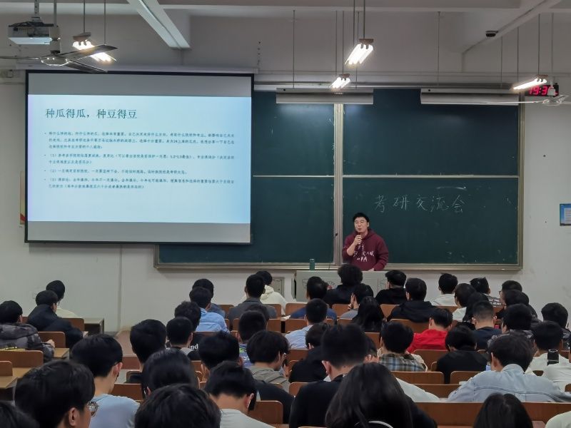 戴建与同学们交流了考研过程遇到的常见问题,分析了报考本校研究生的情况,交流了选择考研高校的办法,介绍成功考取高校研究生的主要经验。他指出,考研是考验自己学习方法和磨炼意志力的过程,大家要借鉴学长和学姐们的经验,保持良好的心态和强健的体魄,抓好学习效率,按照学习计划认真复习,朝自己的目标努力,坚持方能成功。