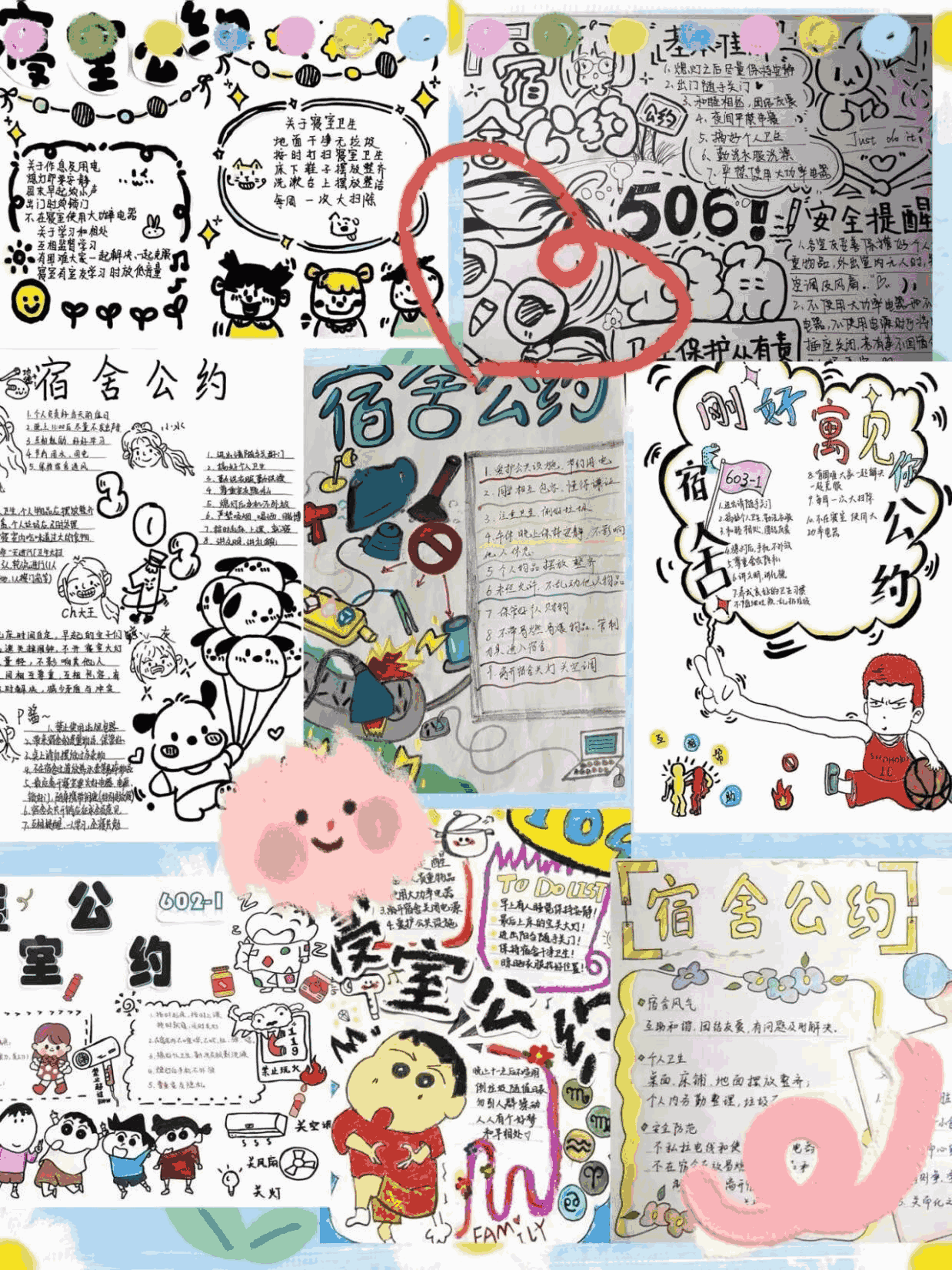 活动中,每个宿舍积极参与,通过集体头脑风暴与绘制设计,形成了各具特色的宿舍公约。这些公约凝聚了同学们的集体智慧,彰显了同学们的才华,同时也汇聚了寝室内部集体的强大力量。宿舍成员在活动过程中团结协作,发挥特长,为营造良好的宿舍环境与和谐的寝室关系贡献了自己的聪明才智。