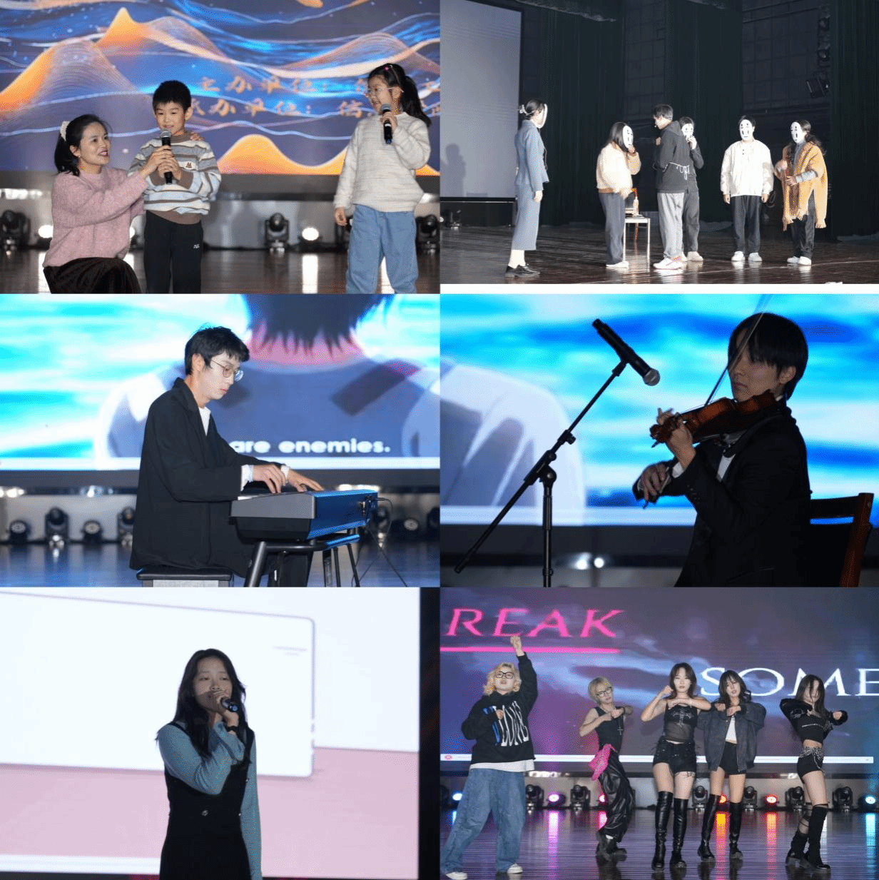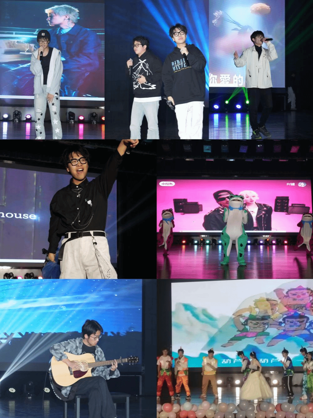 伴随着senior乐团的活力演唱,晚会拉开序幕。第一篇章“青春之舞”中,吉他指弹《like a star》将星辰的璀璨、夜空的深邃以及人类内心的情感世界完美地融合在一起;说唱《下水道的蚂蚁》表现了身处困境的人们如何奋力追逐梦想;话剧《白雪公主和七个葫芦娃》揭开了童话与经典碰撞的面纱;《蛙舞》串烧用身体语言诠释着音乐的节奏与情感,引得同学们纷纷拍手叫好。