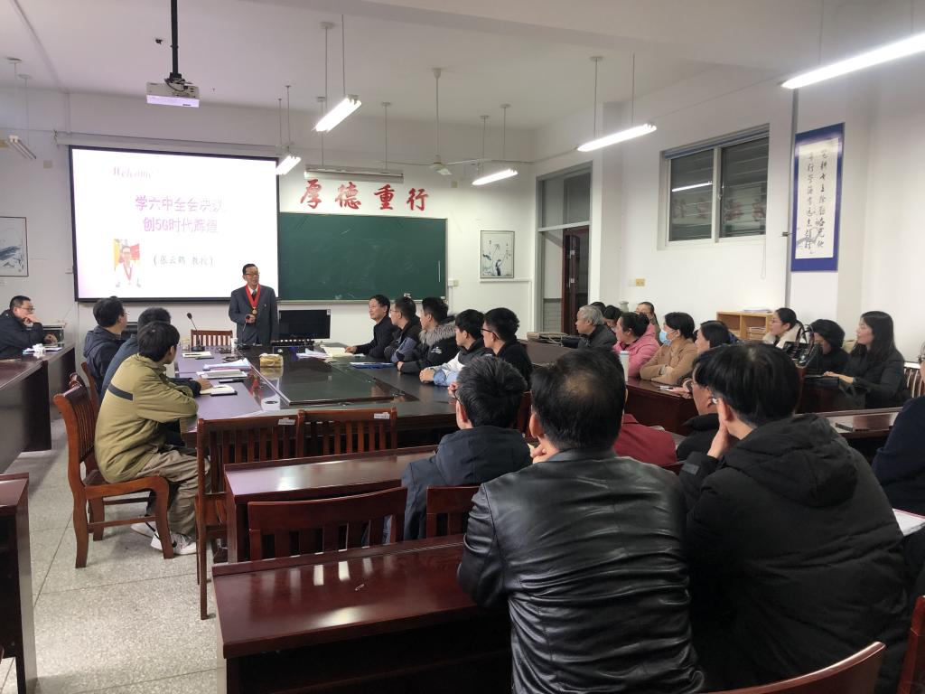 张云鹤以《学习十九届六中全会精神,创5G时代辉煌》为题,与大家一起学习《中国共产党第十九届中央委员会第六次全体会议公报》,向大家介绍新民主主义革命时期、社会主义革命和建设时期、改革开放和社会主义现代化建设新时期、中国特色社会主义新时代4个历史阶段的伟大成就,讲解了相关党史内容,列举了许多革命先辈和老一辈爱国科学家的故事,并通过问答形式与师生积极互动。