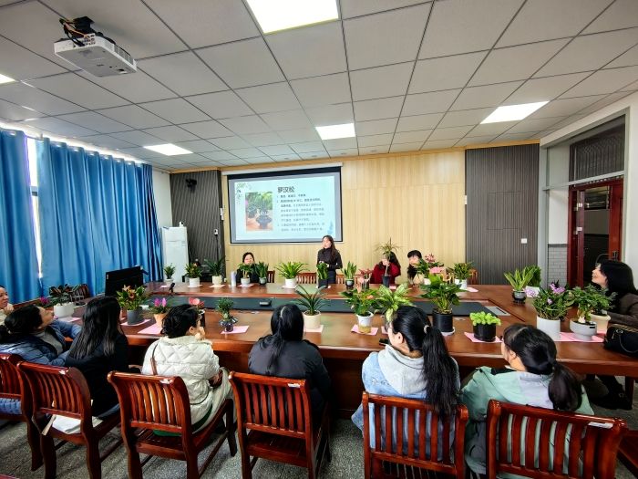 活动现场摆满了各式各样的花卉盆栽,氛围温馨雅致。公司党总支副书记戴建代表公司向所有女教职工致以节日祝福。绿植养护培训师仲燕向女教师介绍了观赏性室内绿植的分类、特性,并对现场摆放的罗汉松、铁栏、金钱树、花叶鸭脚木、君子兰、绿宝、蓝花楹、如意皇后、虎皮兰等十余种绿植详细介绍了养护方法及注意事项。教师们认真聆听,并结合自己的养护经历向培训师交流养护心得。随后,各位教师选择了自己喜爱的盆栽并合影留念。