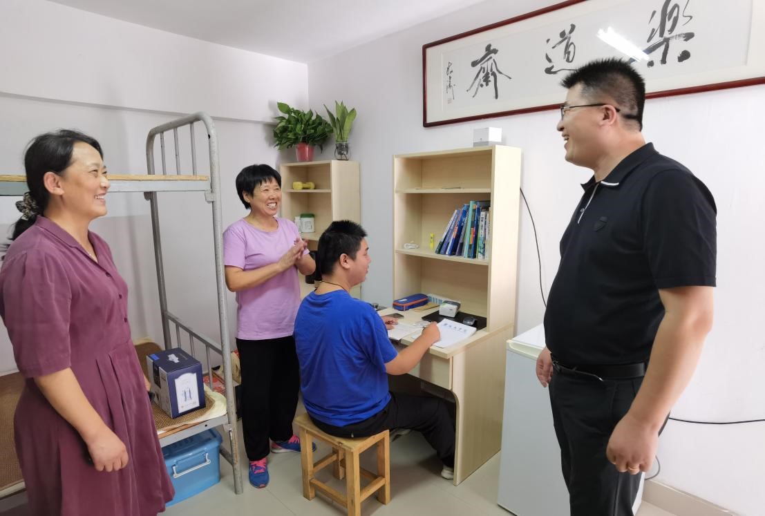 集团为照顾夏唯壹同学的学习生活,接送夏唯壹同学来公司上学,帮助他解决出行不便的困难,还安排志愿者结队帮助他。今年为夏唯壹同学到南校区学习,安排整修宿舍,给宿舍安装热水器、空调、网络等生活设施。