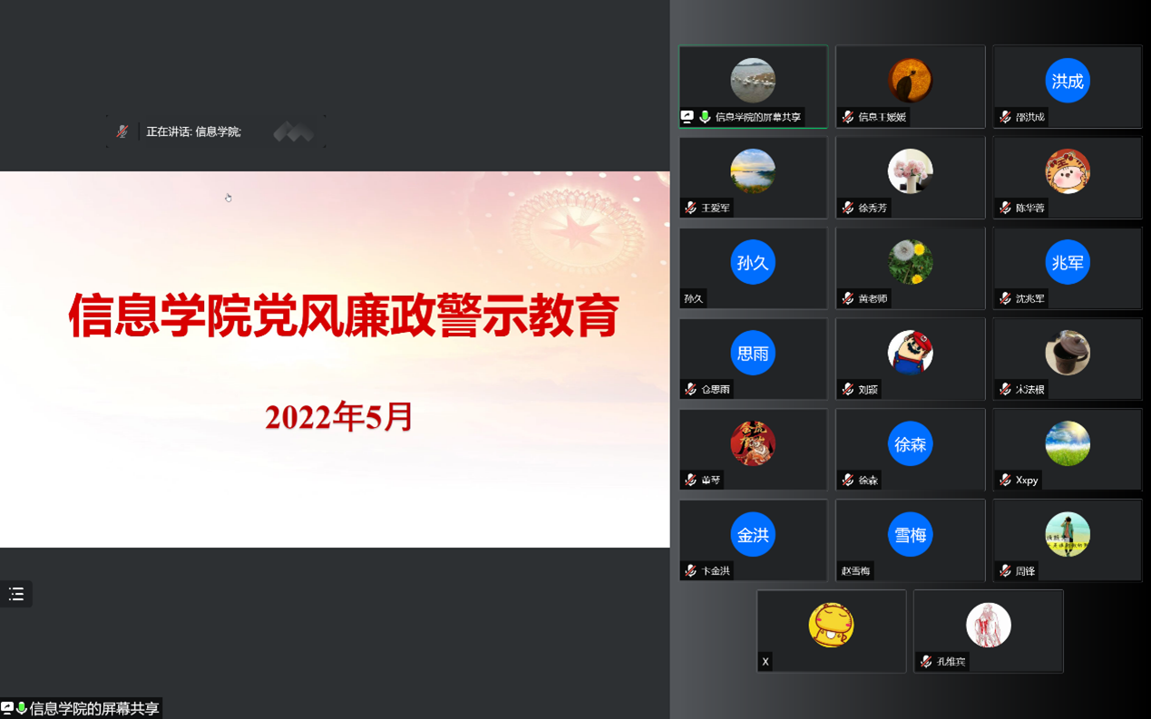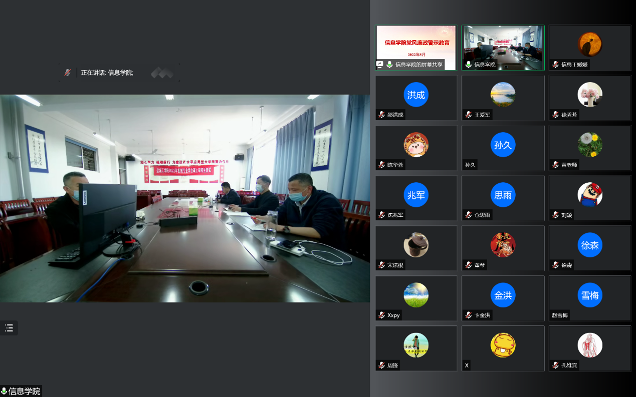 5月2日,公司在怀德楼B410会议室开展党风廉政警示教育,公司领导班子成员及各科室、专业系、实验中心主任参加学习教育,活动采取线上和线上相结合的方式。会议由公司党委书记王爱军主持。
