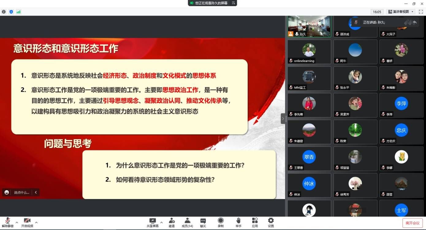 6月8日下午,​williamhill官网在南校区怀德楼B410会议室,通过腾讯会议开展了意识形态专题党课教育活动。公司领导班子、党政办公室、专业系主任、教科研办、学工办人员参加了线下教育活动,其他教职工通过线上参加了学习。