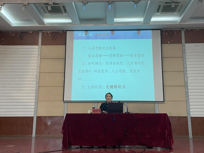 徐新华以《在守正创新实践中发展自我》为主题,介绍“思维方式发展、当今时代特点、关键转折时期、培养学习能力、学会科学管理”等方面内容,讲解“荷花定律”“竹子定律”和“一万小时定律”,通过事例分析引导同学们“打好基础,厚积薄发”。她指出:“当代青年老员工是与新时代同向同行、共同发展的一代,生逢盛世应当倍感珍惜”,同学们要学会学习,科学规划人生目标,努力提升学习能力、实践能力、创新能力,在实践中发展自我。她向同学们推荐三本阅读书:《共产党宣言》《习近平谈治国理政》《从0到1》,寄语同学们“提升解决问题的能力,赋能未来, 成就最好的未来!”
