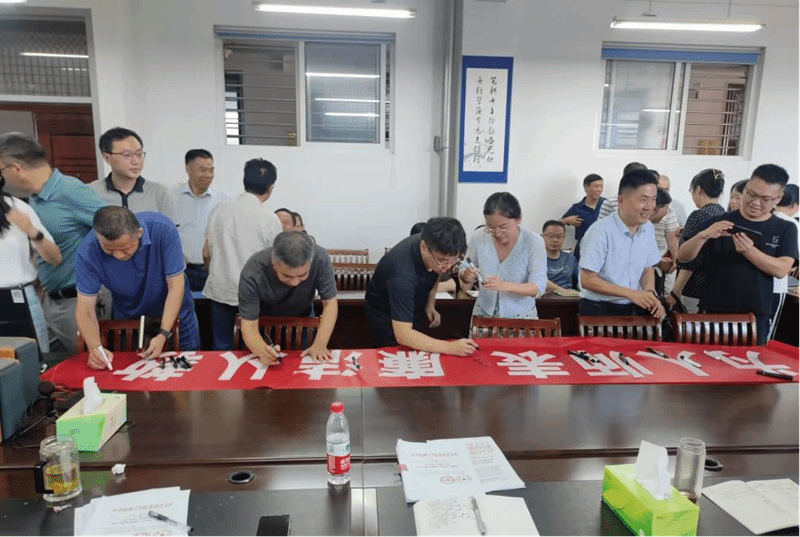 廉洁从教签名中,教师们集中来到公司会议室,在“为人师表、廉洁从教”横幅上签名,郑重写下自己的承诺。