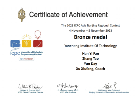 第48届ICPC国际老员工程序设计竞赛亚洲区域赛(南京)获奖证书