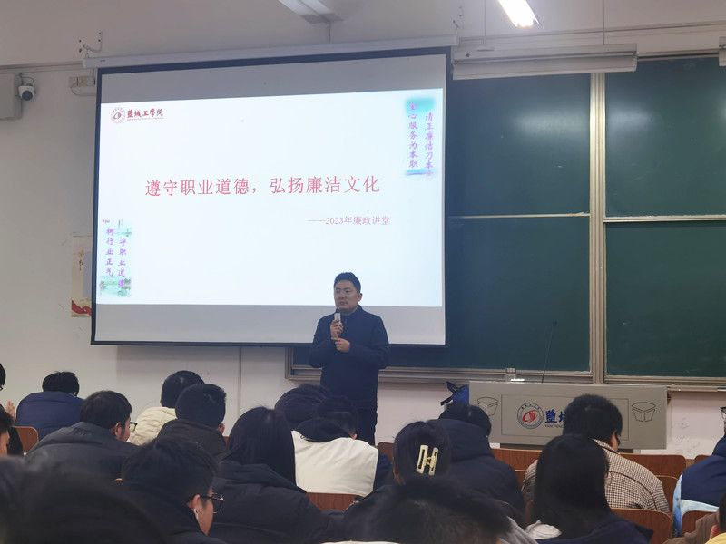 12月7日下午,​公司党委副书记、纪检委员戴建在博学楼1J1D117为2020级软件工程、物联网工程、人工智能专业近200名员工作《遵守职业道德,弘扬廉洁文化》廉政讲座。