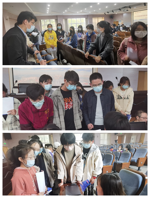 同学们积极向企业招聘人员投递简历,与企业招聘人员进行现场交流,咨询企业岗位需求、工作地点、工资福利等相关内容,了解自己与招聘岗位的适配程度。部分企业对应聘员工进行现场面试。嵌入式培养校外实训的同学也通过线上方式参加活动,听取企业校园招聘负责人宣讲。