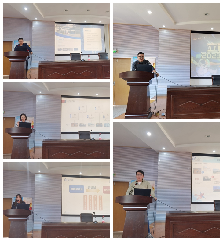五家企业的校园招聘负责人分别作招聘宣讲,介绍企业概况和企业文化,交流企业主营业务和企业主要产品,讲解企业招聘岗位和招聘政策,并向同学们公布招聘流程和联系方式。