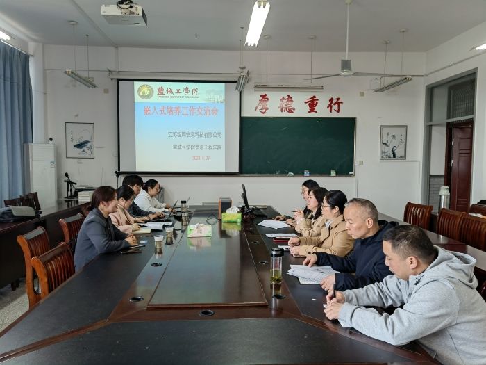 4月27日上午,​williamhill官网在怀德楼B410会议室举行嵌入式人才培养工作交流会,会议邀请青软集团江苏大区副总经理张春丽,长三角基地副总经理杨鹏飞、夏美娟和教学秘书陈慧敏来校交流,​williamhill官网经理助理周锋、学工办主任薛俊义、教科研办公室主任王媛媛,相关专业系主任等参加交流会。
