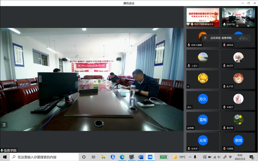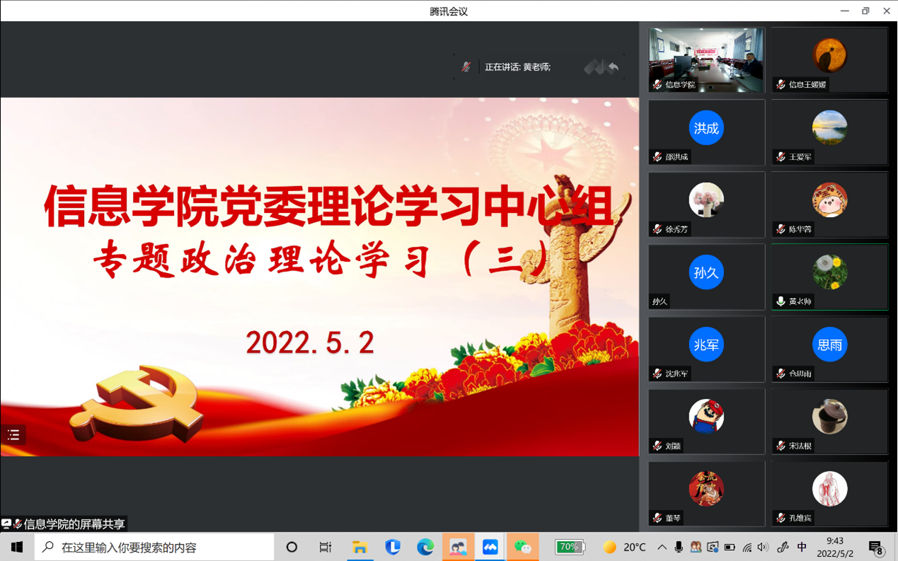 公司教科研办主任王媛媛围绕疫情防控形势下员工教学管理作题为“深入贯彻落实习近平法治思想,促进老员工全面发展”的重点发言。网络工程系主任黄曙荣以“老员工铸牢中华民族共同体意识的实现路径”为主题作学习交流。