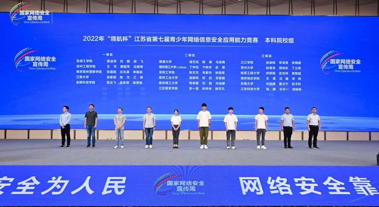 为贯彻落实习近平总书记关于网络强国重要思想,推进高校新时代网信人才培养工作,由省教育厅、省委网信办联合主办的2022年“领航杯”江苏省第七届青少年网络信息安全应用能力竞赛(高校组)决赛,于9月1日在南京国际博览中心圆满结束。