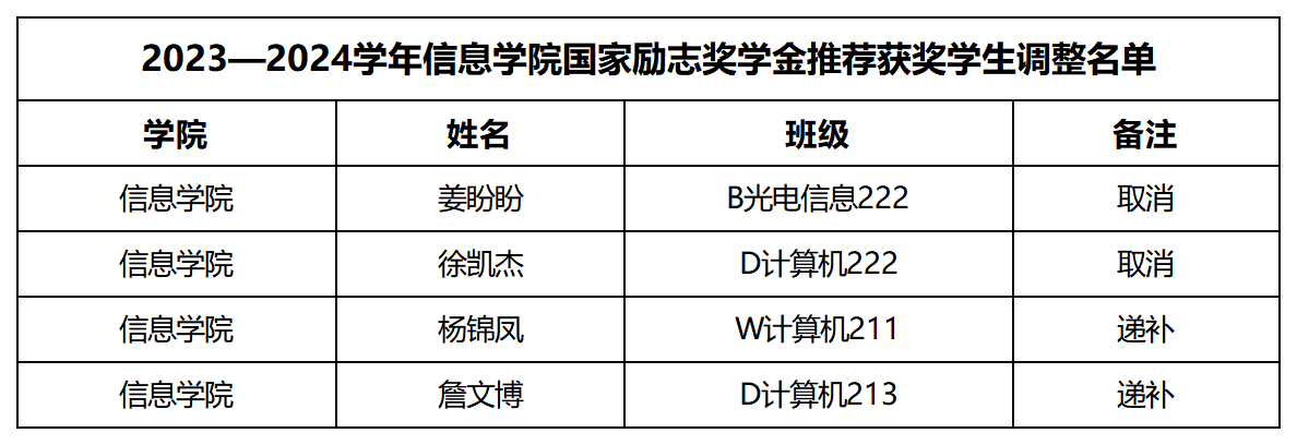 2023—2024学年国家励志奖学金推荐获奖员工名单调整公示