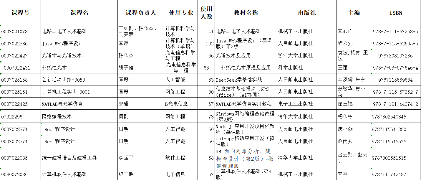 按照《关于2025年秋学期教材预订的通知》文件要求,williamhill官网开展2025年秋学期教材预订工作。根据教材选用原则,对于2025-2026学年秋学期开设课程新增选用教材,经课程负责人申请、公司审核,现将公司新增教材选用汇总公示如下: