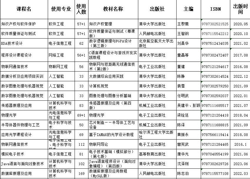 按照《关于2024年春学期教材预订的通知》文件要求,williamhill官网开展2024年春学期教材预订工作。根据教材选用原则,对于2023~2024学年春学期开设课程新增选用教材,经课程负责人申请、公司审核,现将公司新增教材选用汇总公示如下: