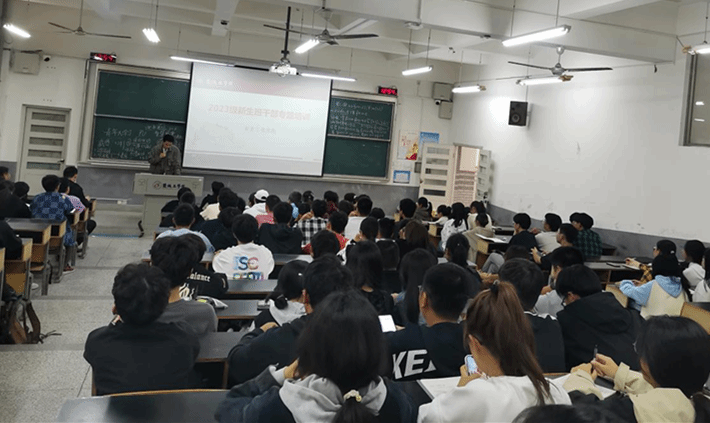 10月16日下午,williamhill官网在建军东路校区体知楼101教室举办2023级员工班干部专题培训,辅导员老师席东风、赵艳作专题交流,2023级127名员工班干部参加活动。