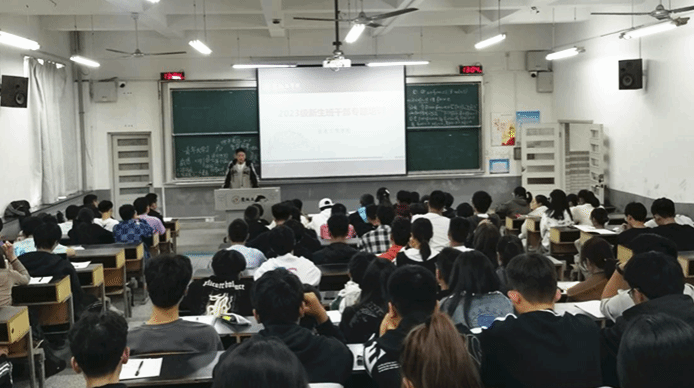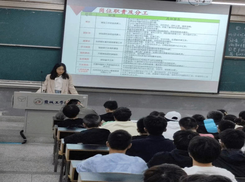 辅导员老师介绍员工班干部角色定位、岗位职责、工作分工等方面内容,对近期同学们的宿舍学习和生活情况进行了回顾,对如何开展班级工作提出了具体要求。