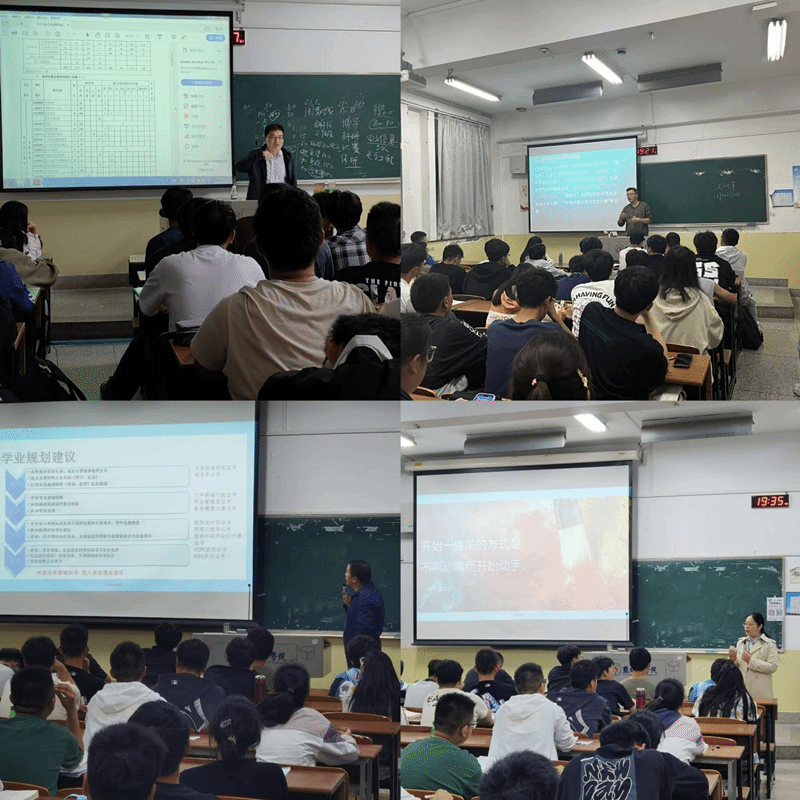 孔维宾、沈兆军、黄曙荣、宋法根等老师介绍人才培养方案,从服务领域、人才定位、职业特征、职业能力等方面讲解人才培养目标,交流课程体系的框架结构及课程设置,强调了老员工参与科研和学科竞赛的重要性,指导同学们科学规划学习和生活,鼓励同学们明确目标、勤奋学习、超越自我。
