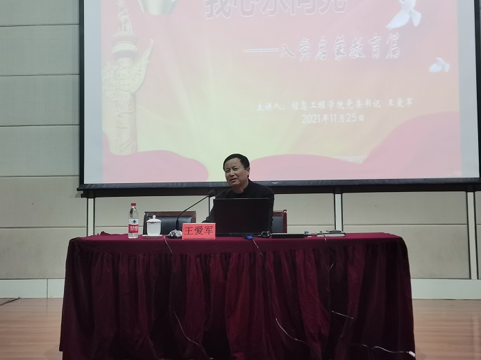 王爱军作《我心永向党——入党启蒙教育》专题讲座,从中国共产党的性质和端正入党动机两大方面为新生作入党启蒙教育。他详细讲解了中国共产党的基本知识,强调了党对青年员工成长的关键作用,剖析了不良入党动机的表现,通过学习优秀党员的先进事迹来帮助新生加强对党的认识,端正入党动机。他强调,端正入党动机,是正确行动的精神力量,只有树立了正确的入党动机,才能经受住党组织的考验。他希望同学们以优秀党员为榜样,加强党的理论知识的学习,努力学好科学文化知识,提高自身素质,打牢为人民服务的基础,增强为人民服务的意识,以实际行动争取早日入党。